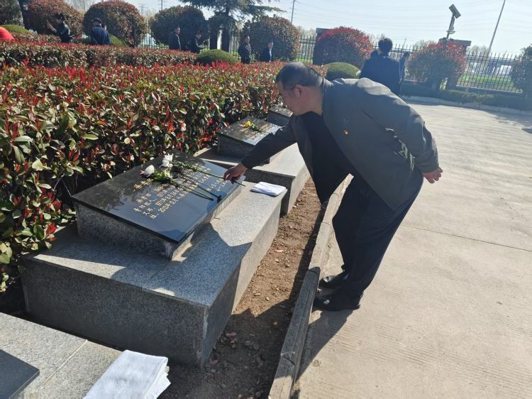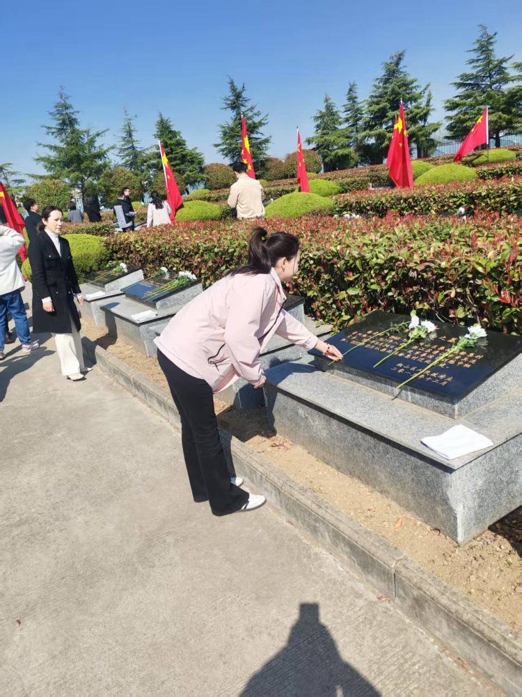 活動(dòng)伊始,全體黨員整齊列隊(duì),懷著崇敬之情向革命烈士敬獻(xiàn)花籃,寄托著對先烈們的無限哀思與崇高敬意。隨后,在鮮紅的黨旗前,全體黨員莊嚴(yán)地舉起右拳,重溫入黨誓詞。鏗鏘有力的誓言在陵園上空回蕩,彰顯了黨員們不忘初心、牢記使命的政治信念。最后,黨員們有序參觀了陵園內(nèi)的紀(jì)念碑,支部書記楊旸同志帶領(lǐng)支部黨員紛紛向英雄先烈們獻(xiàn)上鮮花。