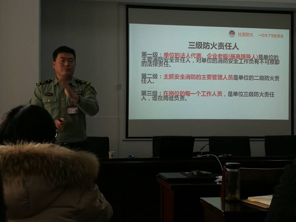 活動(dòng)中,宣傳教官采取PPT課件宣講的方式向干部職工大力宣傳消防知識(shí),并現(xiàn)場(chǎng)向廣大干部職工講解火災(zāi)的危險(xiǎn)性和防火措施;單位員工消防安全四個(gè)能力建設(shè),單位消防設(shè)備的性能、滅火器材的使用方法;報(bào)火警,家庭撲救初起火災(zāi)以及自救逃生的知識(shí)和技能等。