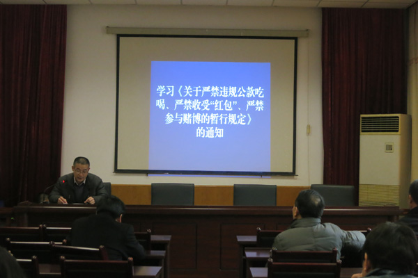 12月23日下午,集團公司組織全體干部職工,認真?zhèn)鬟_學習市委辦、市政府辦《關于嚴禁違規(guī)公款吃喝的暫行規(guī)定》、《關于嚴禁收受“紅包”的暫行規(guī)定》、《關于嚴禁黨員和干部參與賭博的暫行規(guī)定》的通知精神。
