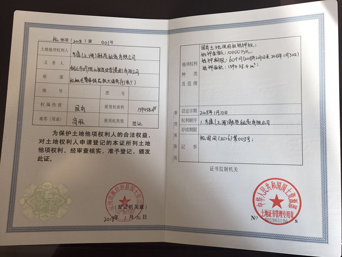 1月12日上午在盡調(diào)人員的不懈努力下,松桃縣人民醫(yī)院院長(zhǎng)順利的簽訂了融資租賃合同及醫(yī)療設(shè)備所有權(quán)轉(zhuǎn)讓協(xié)議,緊接著盡調(diào)人員趕往松桃苗族自治縣不動(dòng)產(chǎn)中心,在武投公司相關(guān)工作人員的配合下,對(duì)松桃縣打鹽場(chǎng)附近價(jià)值2億元的土地辦理了土地抵押手續(xù)。