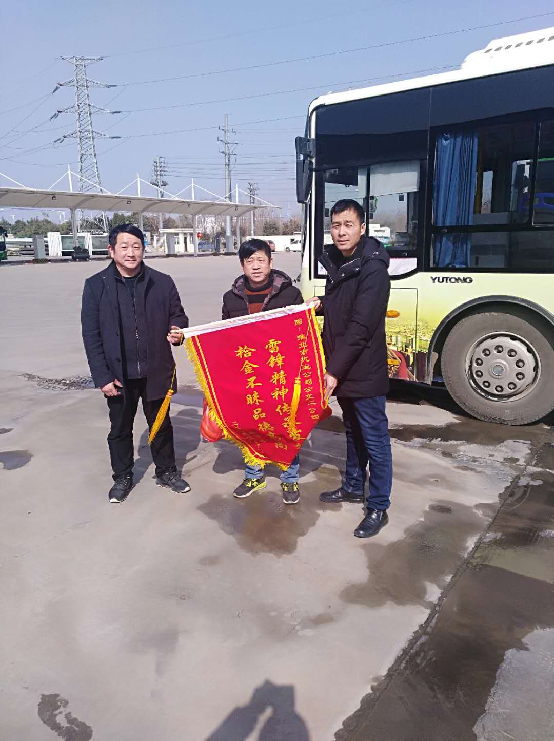 “真是太感謝了,要是沒有高瑞師傅,我的包可能就再也找不到了,包里還有四千多元的欠條也要不回來了”失主激動地說道。2月26日下午,失主將一面印有“雷鋒精神傳承發(fā)揚 拾金不昧品德高尚”的錦旗送給了109路車司機高瑞。