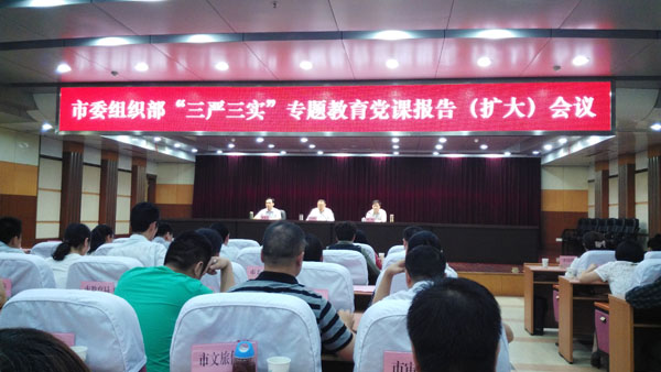 按照全市“三嚴(yán)三實”專題教育部署安排,結(jié)合“弘揚(yáng)沈浩精神、建設(shè)模范部門”主題實踐活動,5月20日下午,市委組織部召開“三嚴(yán)三實”專題教育黨課報告(擴(kuò)大)會議。市委常委、市委組織部部長、市政府常務(wù)副市長沈光繼出席會議,并為全市組工干部上了一堂生動的黨課。