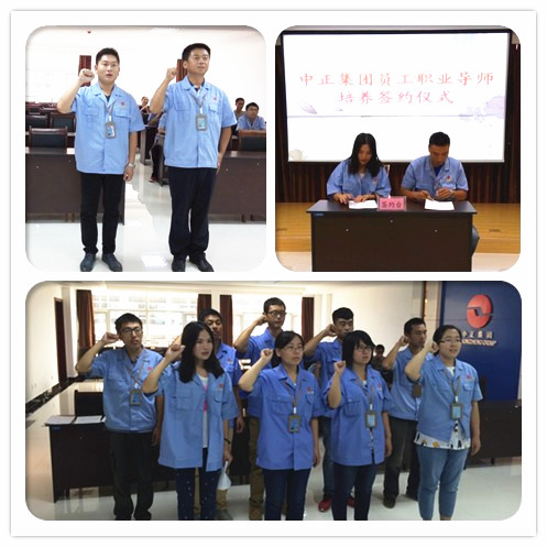 2015年9月8日上午8:30,集團駐地舉辦了員工職業(yè)導(dǎo)師培養(yǎng)簽約儀式和干部員工宣誓儀式。工程公司3名新員工與導(dǎo)師正式簽約。集團駐地9名干部員工面對司旗,莊嚴(yán)宣誓:忠誠集團事業(yè),秉承集團宗旨,弘揚集團精神;團結(jié)協(xié)作、努力進??;全心全意,爭先創(chuàng)優(yōu);為興我中正,而竭盡全力。
