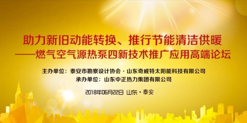 助力新舊動能轉換,推行節(jié)能清潔供暖。2018年6月22日上午,由泰安市勘察設計協(xié)會、山東奇威特太陽能科技有限公司主辦,山東中正熱力集團有限公司承辦的燃氣空氣源熱泵四新技術推廣應用高端論壇,在泰安寶龍福朋喜來登酒店隆重舉辦。